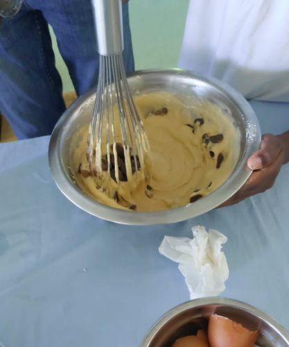 - Avec l'atelier : Je réalise devant vous ou avec vous ou c'est vous qui réalisez, un gâteau, des gaufres, des muffins pizza, un chodo, une pâte à dombrés, du pain sans gluten, une tarte, un mont blanc, une bûche, une pâte à crêpes, etc. avec des farines et des produits locaux, étape par étapes, cuit à la vapeur ou au four.